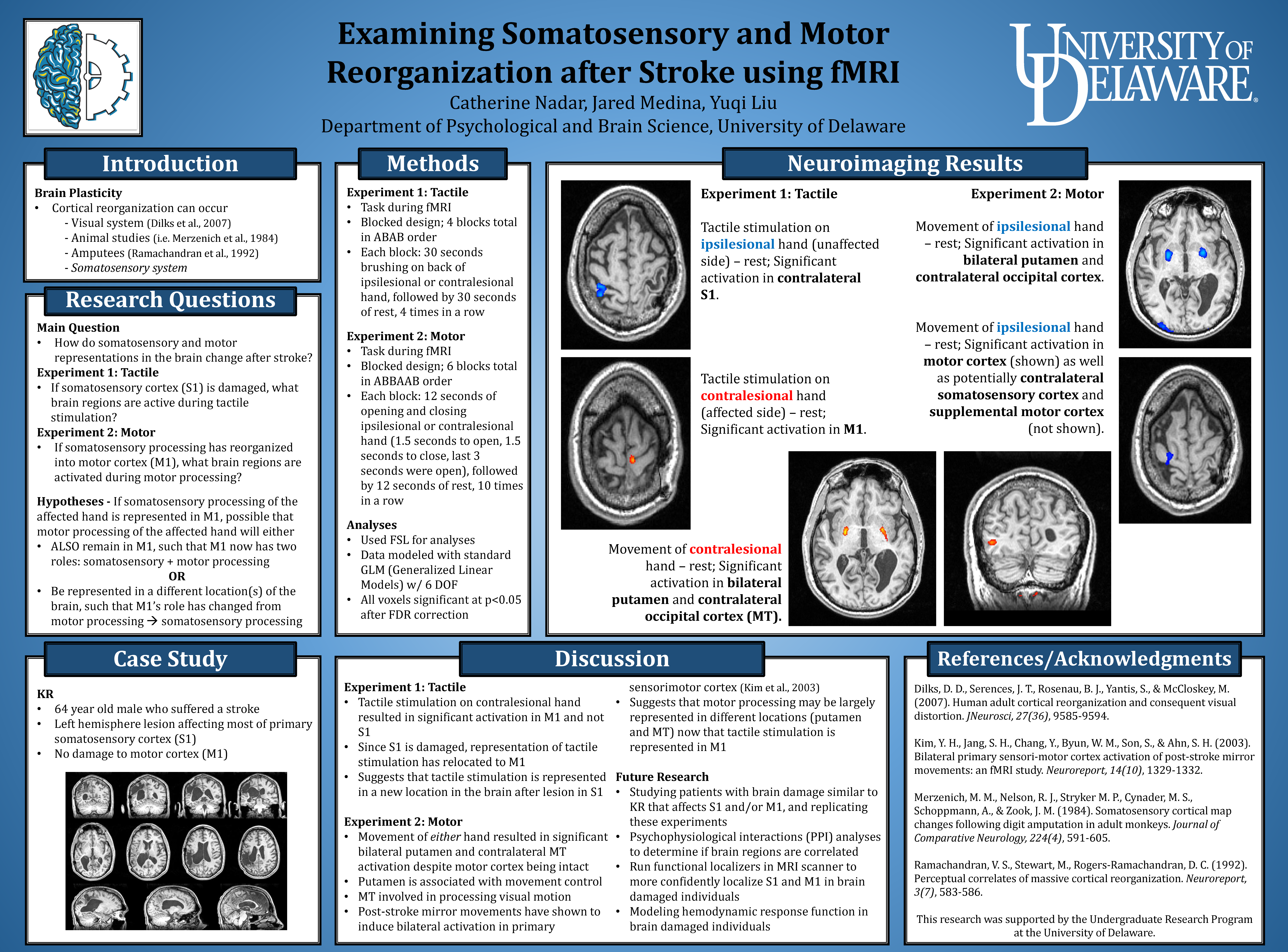 TLDR; I researched somatosensory and motor plasticity after stroke, and found that tactile representation after damage to somatosensory cortex reorganized to motor cortex in a patient case study.